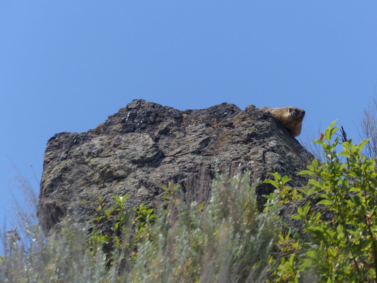 Yellow-Bellied Marmot, Peering from his Coyote Rock