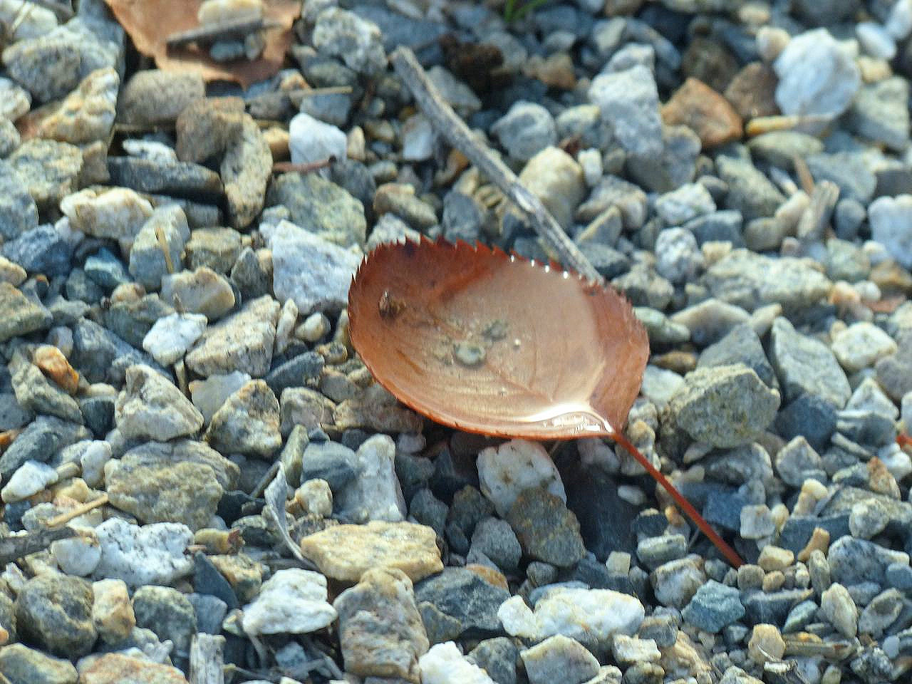 A Footstep or Pool of Water in a Saskatoon Leaf After October Rain