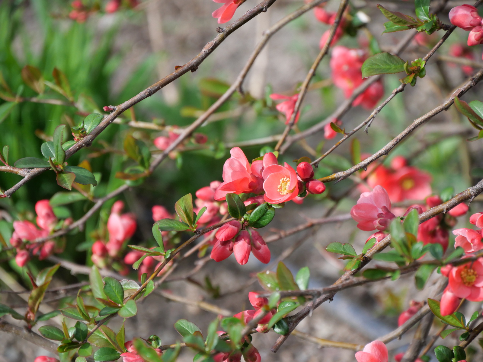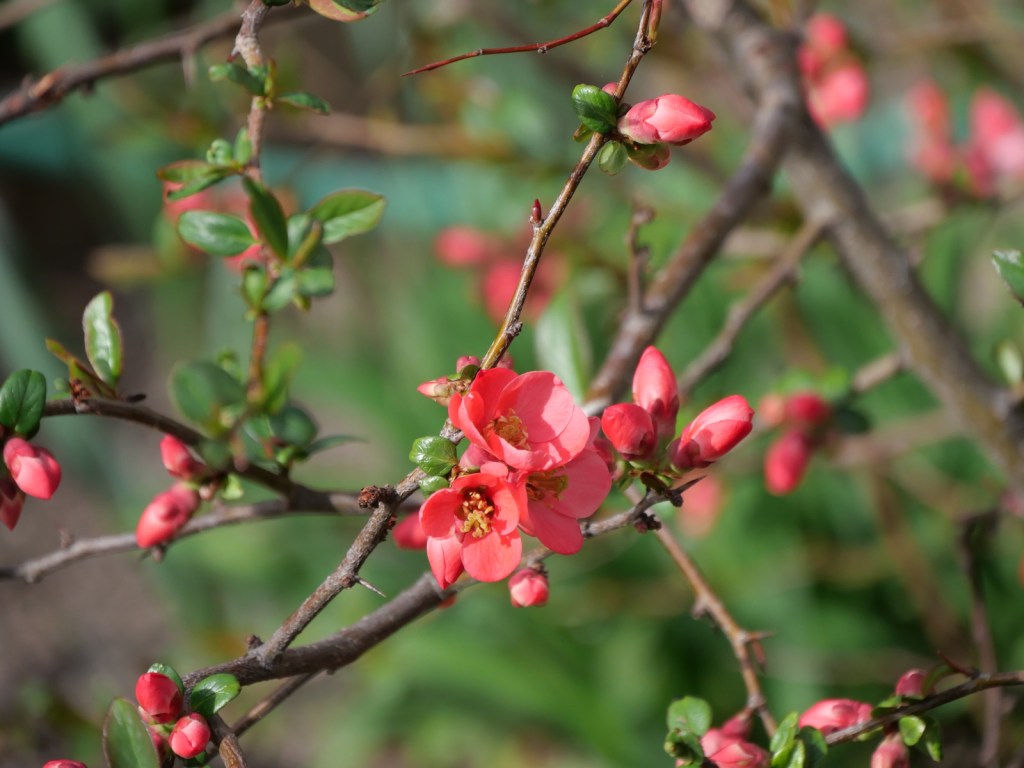 Quince blossoms popping open.